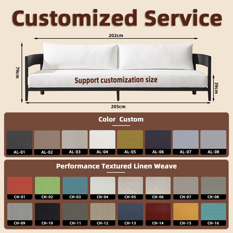 Outdoor Furniture Aluminum Garden Sofas Lounge Chairs Patio Sets for Hotels 3S Sofa Set for Villa Outdoor Furniture