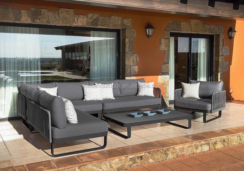 Outdoor Furniture Patio/Garden Brushed Aluminum Sofa with Plastic Wood Coffee Table Lounge Furniture