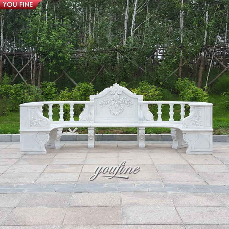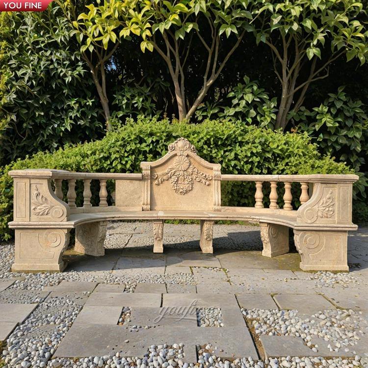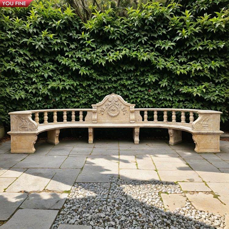 Panca Lunga Curva in Marmo Naturale Scolpito a Mano per Giardino e Parco