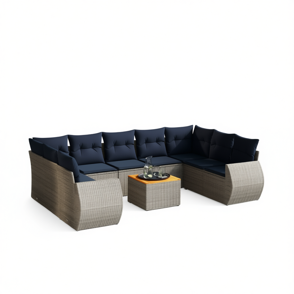 Set Divano da Giardino per Esterni 10 Posti in Polyrattan Grigio con Cuscini Design Contemporaneo Struttura in Vimini