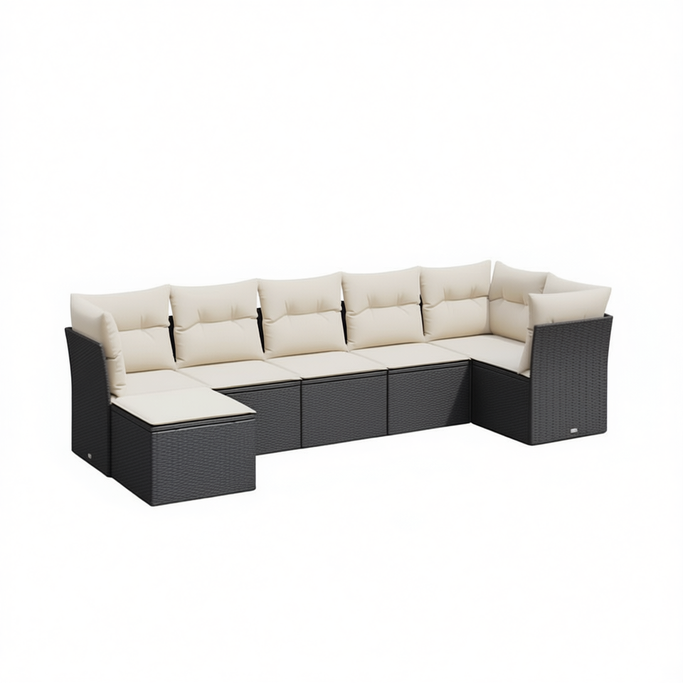 Set Divano da Giardino in Rattan con Braccioli Regolabili, Design Rettangolare, Cuscini Neri, Arredamento per Patio e Terrazza