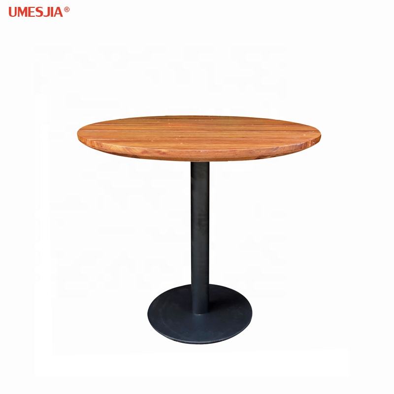 Tavolo da pranzo in teak da giardino e Patio da esterno e tavolo rotondo con base in acciaio inossidabile Color ottone nero scuro 90cm