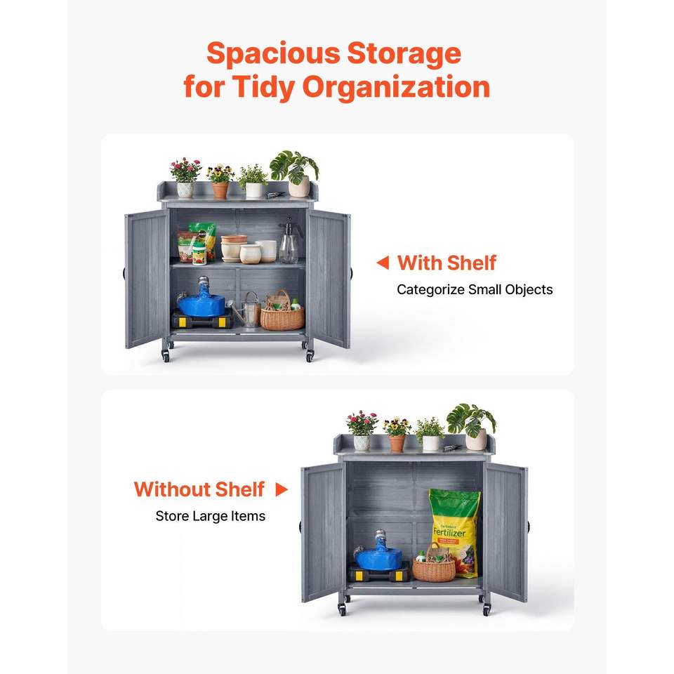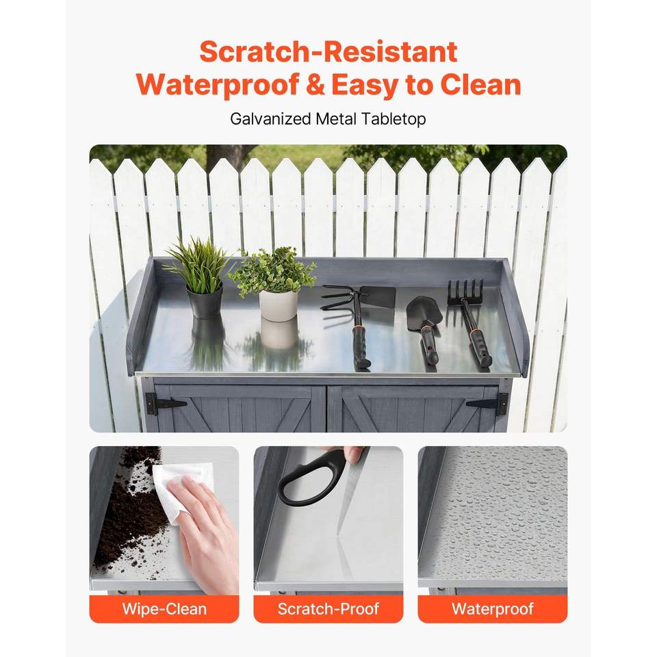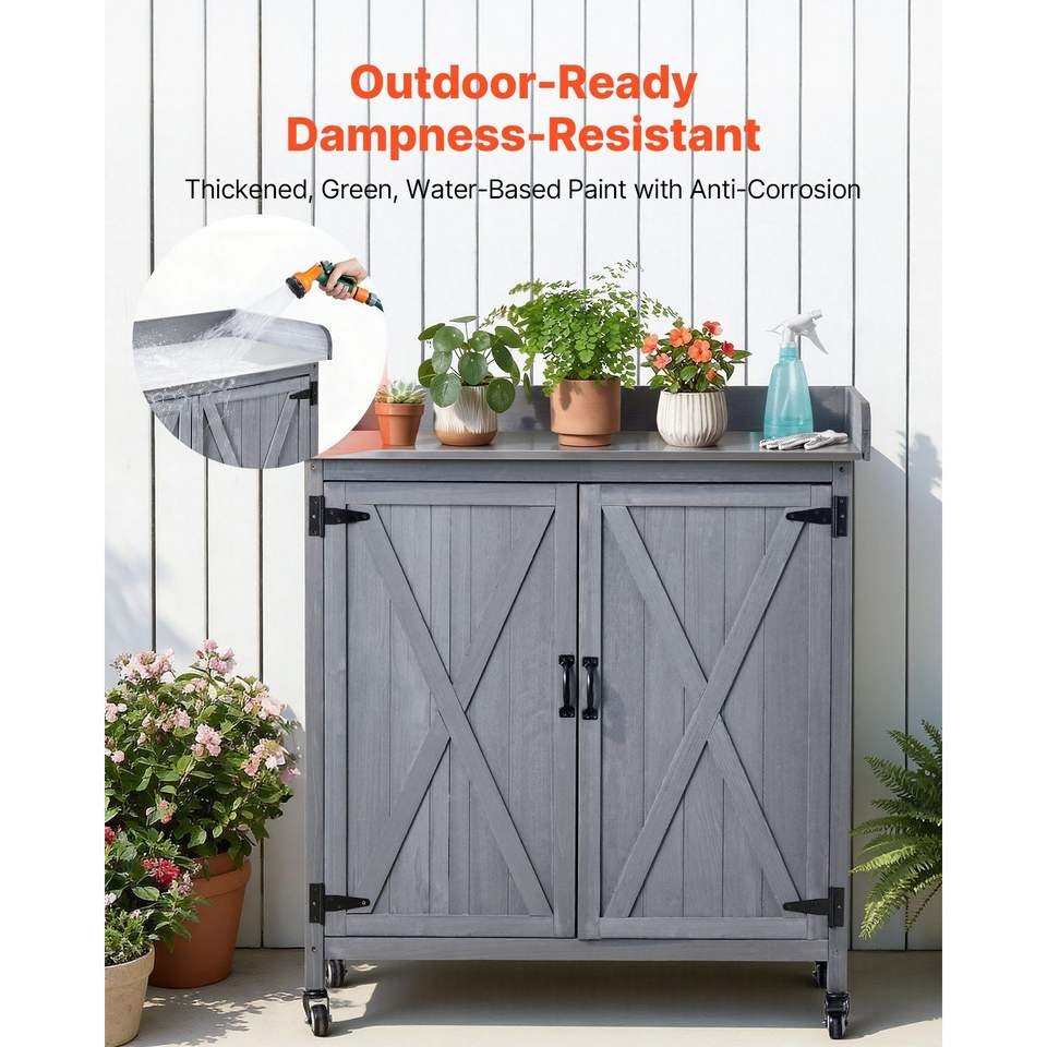 Outdoor Gardening Potting Bench Table with Wooden Storage Cabinet 36 X 16 Galvanized Iron Tabletop Garden Planting Workstation