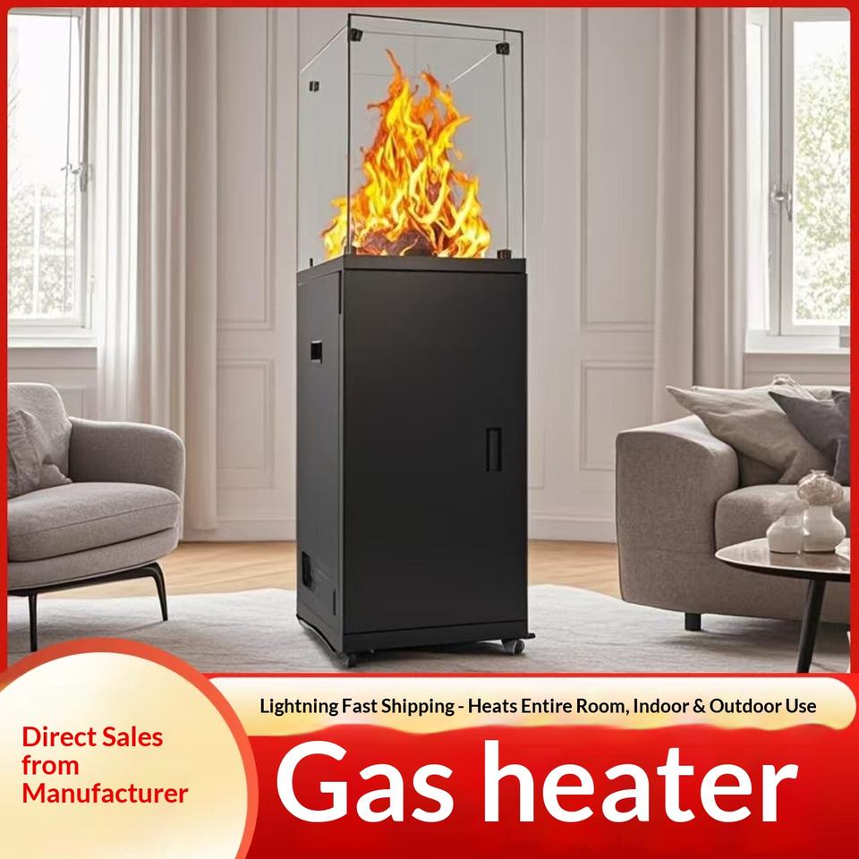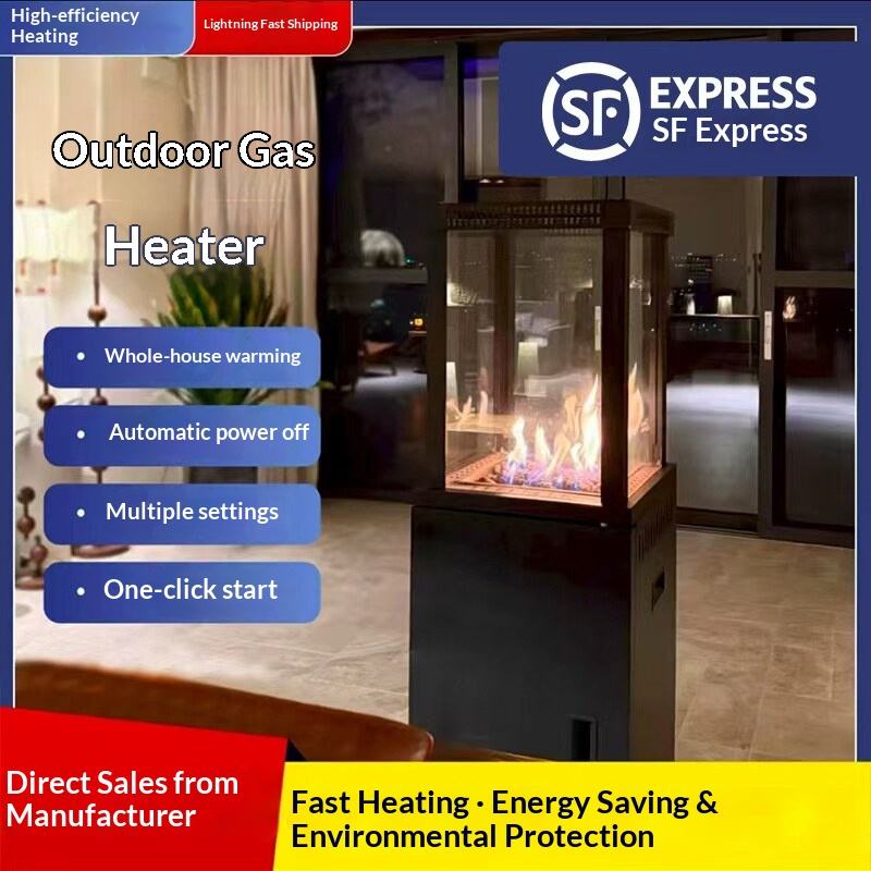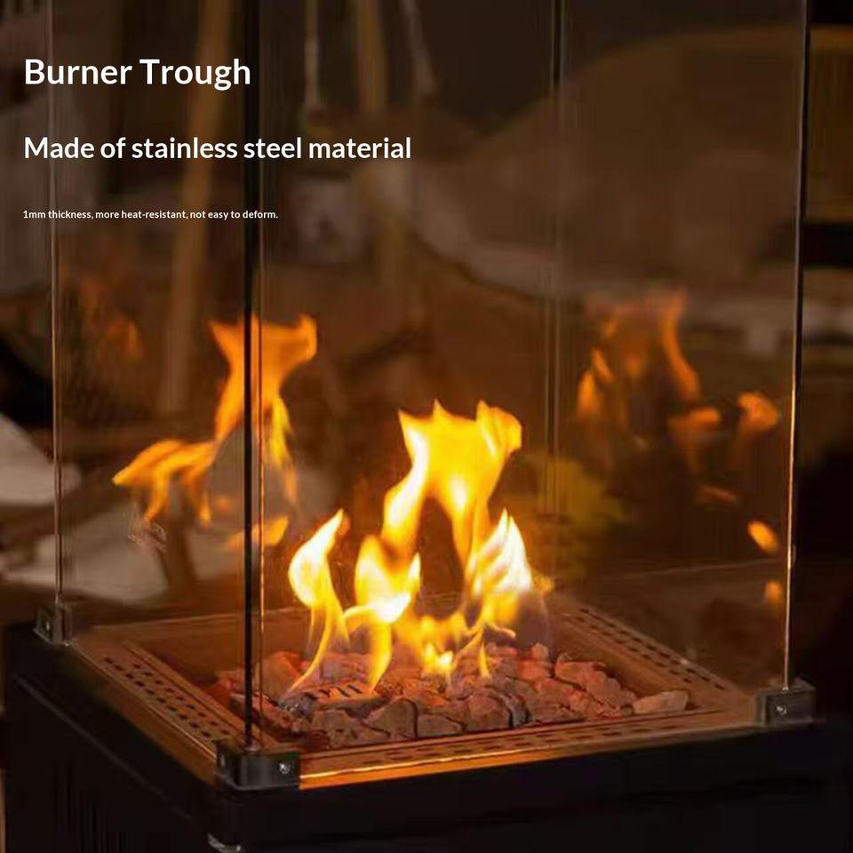 Stufa a Gas da Esterno con Accensione Elettronica e Protezione Antiribaltamento 2000W, Caminetto a GPL per Patio