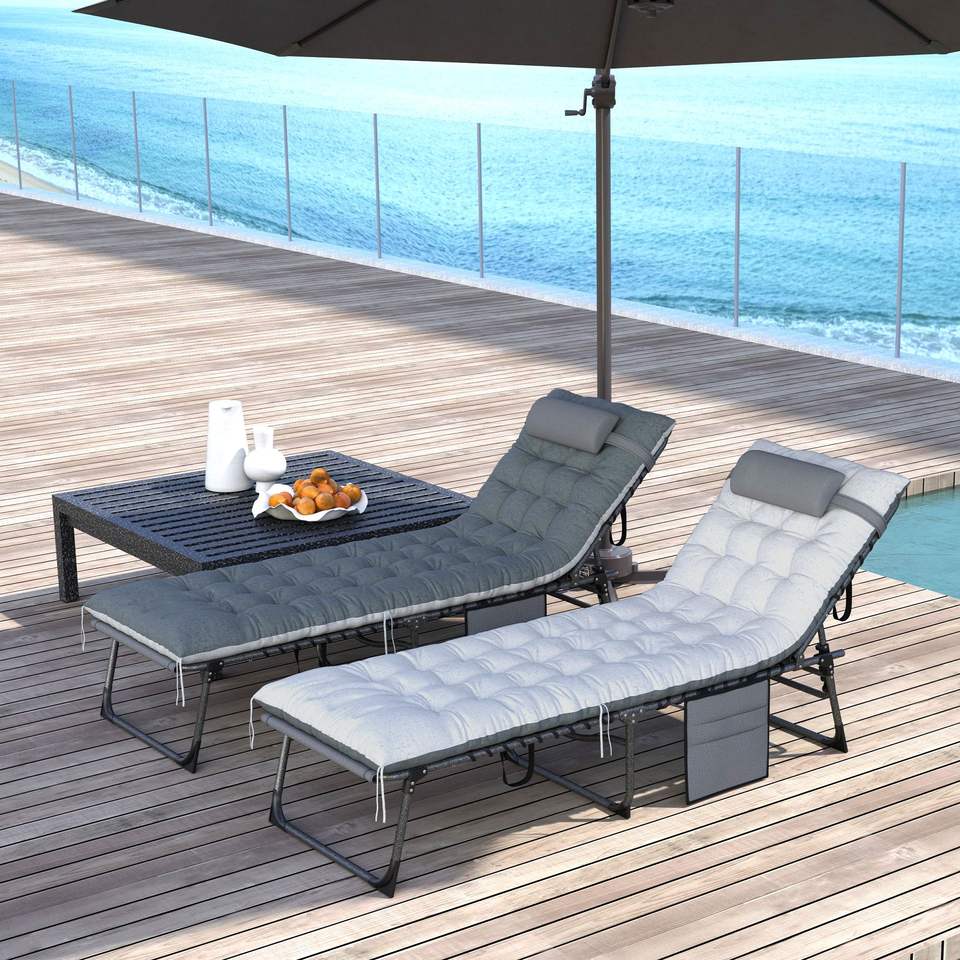 Set di 2 Chaise Longue Grigie da Esterno con 5 Livelli di Regolazione Pieghevoli e Cuscini