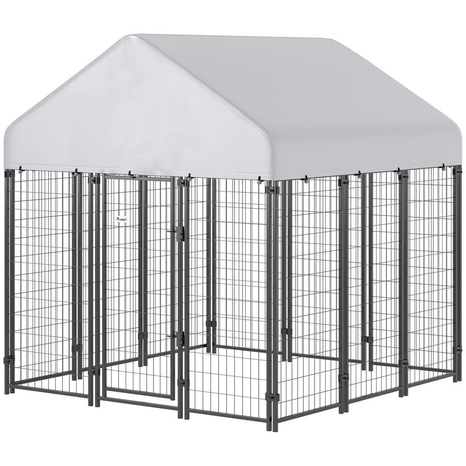 Recinto per Cani da Esterno Resistente 6x6x6 in Rete Saldata con Tetto, Gabbia Anti-fuga con Chiusura di Sicurezza, Box per Animali Domestici Modello D0100XF914A