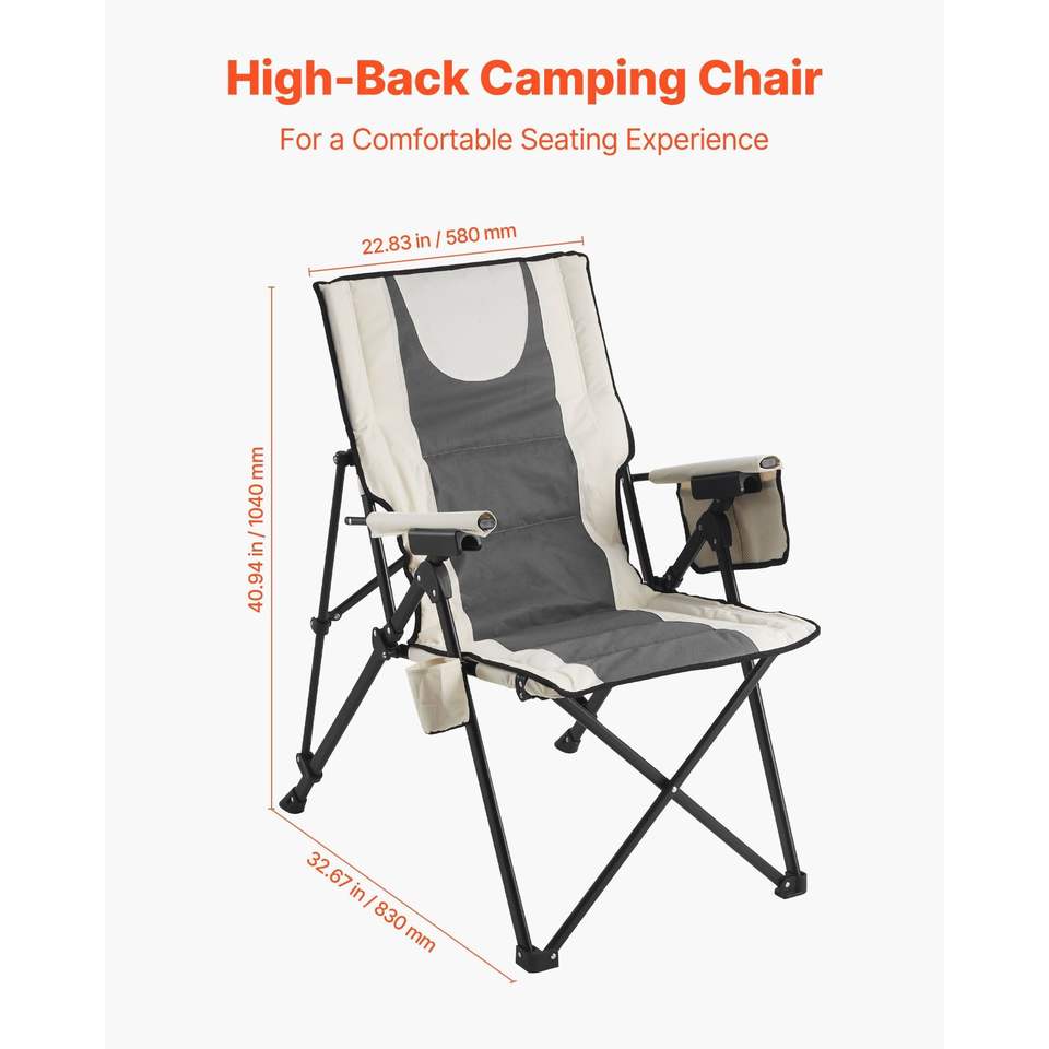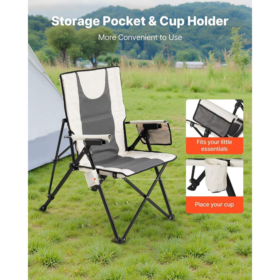 Outdoor High-Back Folding Camping Chair 3 Reclining Positions 260lbs Weight Capacity Full Padded Beach Chairs Armrest Chair