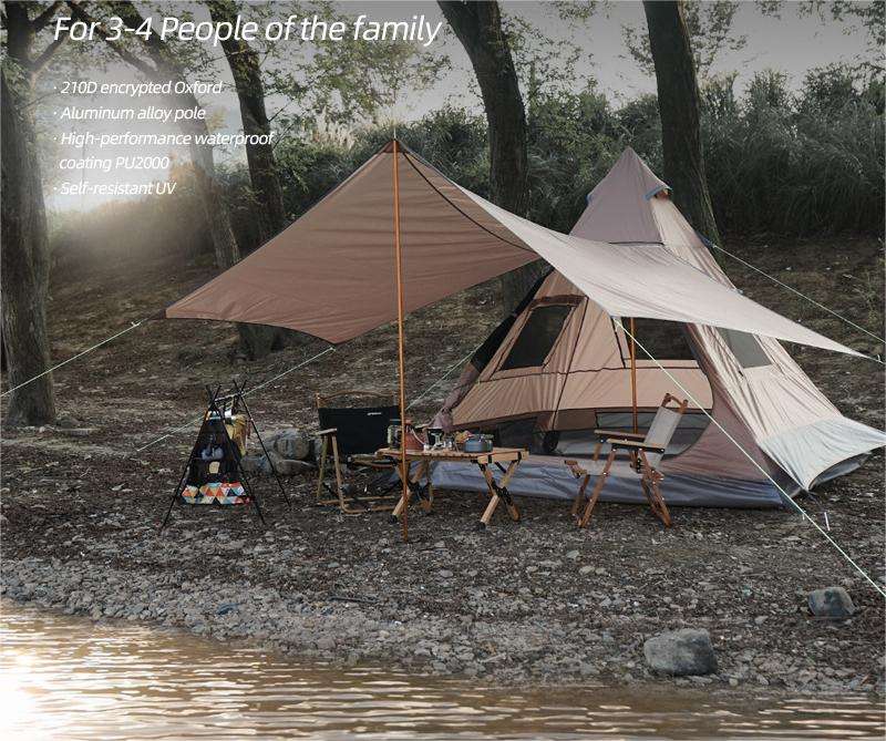 Tenda Indiana Piramidale da Esterno per 3-4 Persone, Pieghevole con Tenda Parasole, Impermeabile e Resistente ai Raggi UV
