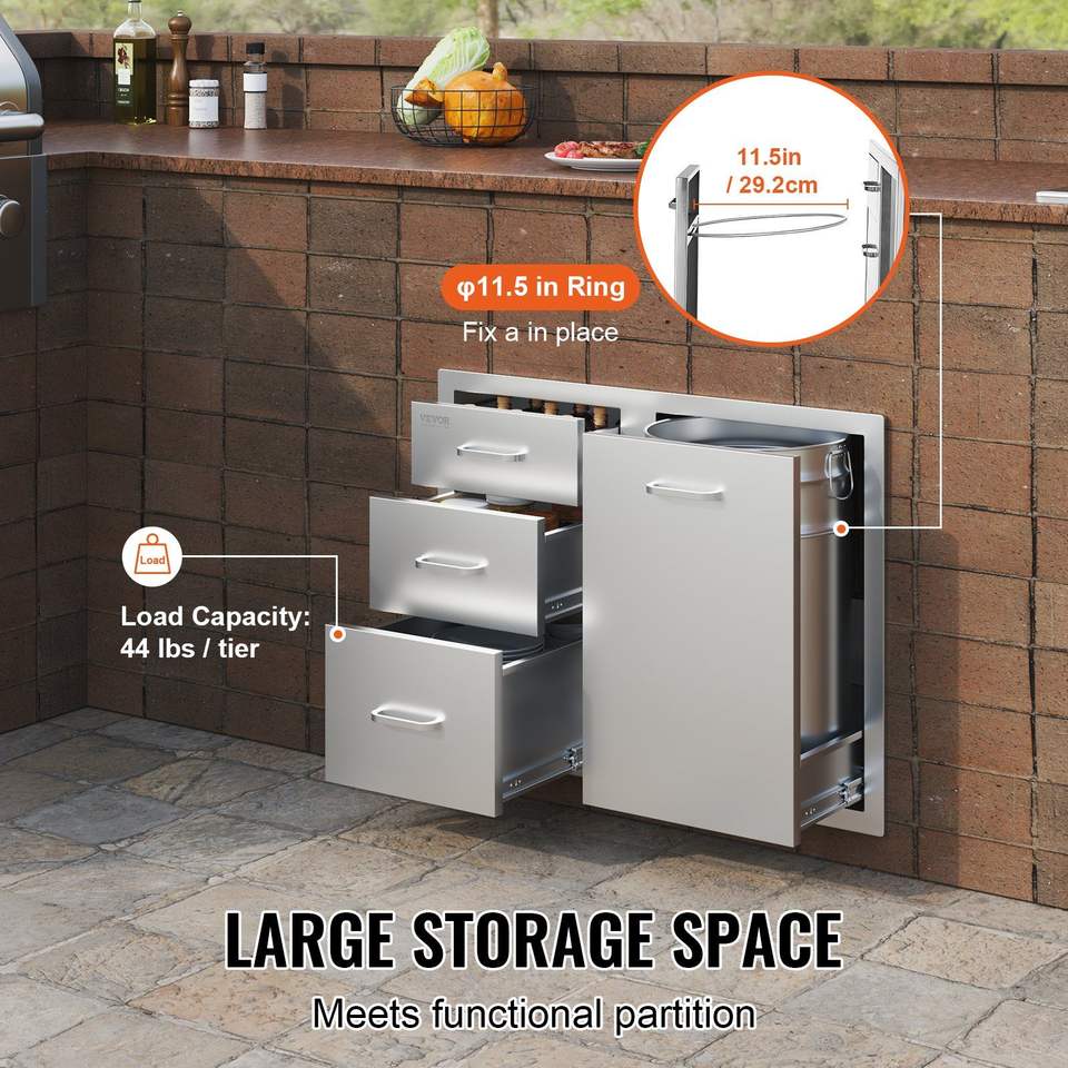 Porta di Accesso per Cucina Esterna e Combinazione Cassetti Tripli 75 cm L x 57,5 cm A x 55 cm P, Cassetto Porta Propano, Contenitore Regolabile