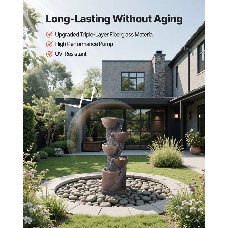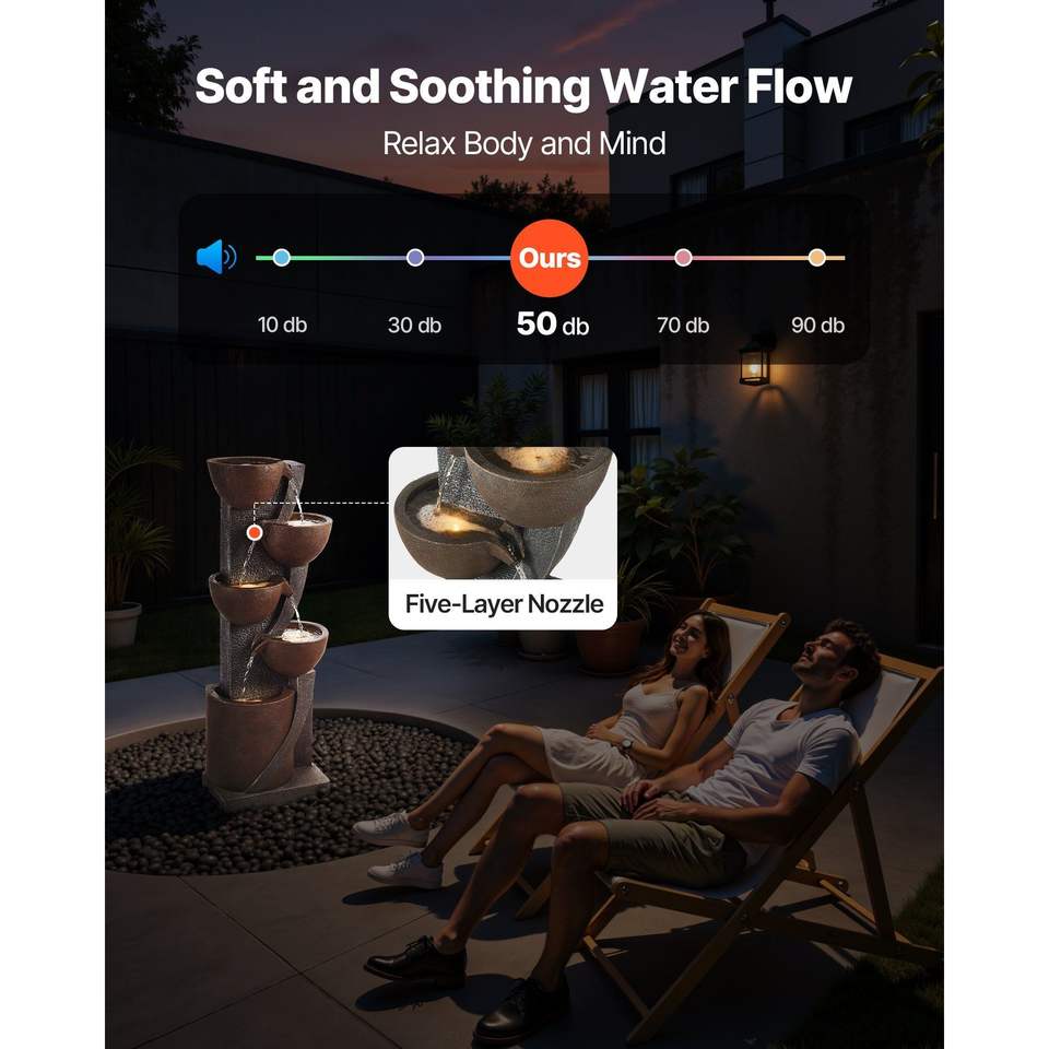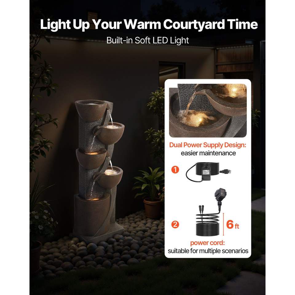 Fontana a Cascata a 5 Livelli a Forma di Vaso con Illuminazione LED per Esterni, Altezza 49,61 Pollici