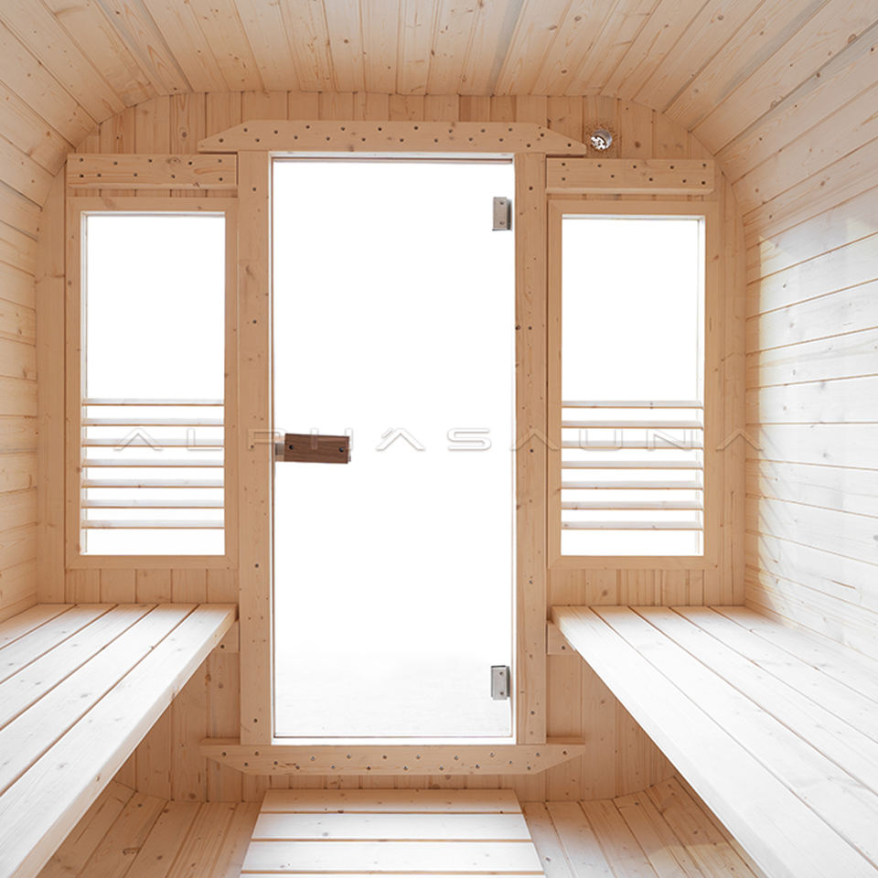 Packaging Details:including barrel sauna, foundation, sauna door,seat,guard bar,hanger,cup holder,footstep,headrest 2pcs, burning stove and all necessories sauna accessories backrest etc. And full sets will be packed into1wooden package, sauna heater, chimney etc will be packed seperately.