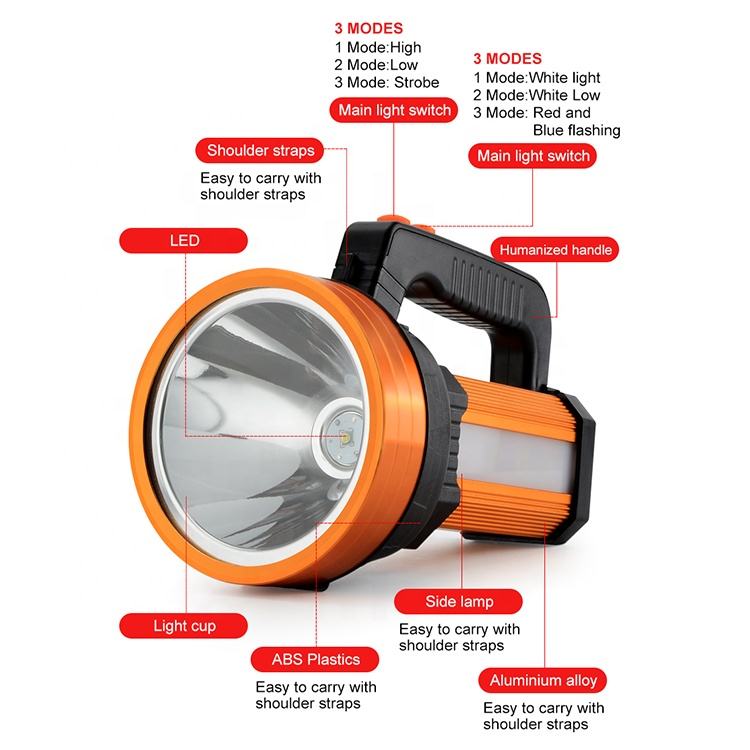 Torcia per faretto a led ricaricabile usb a lunga distanza per esterni 10W T6 luce di ricerca portatile per il campeggio