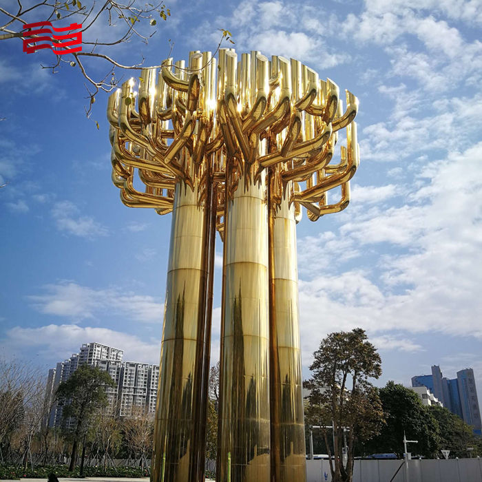 Mostre all'aperto di sculture in metallo che mostrano arte astratta di artisti locali e opere in metallo mostrano lo spirito della comunità