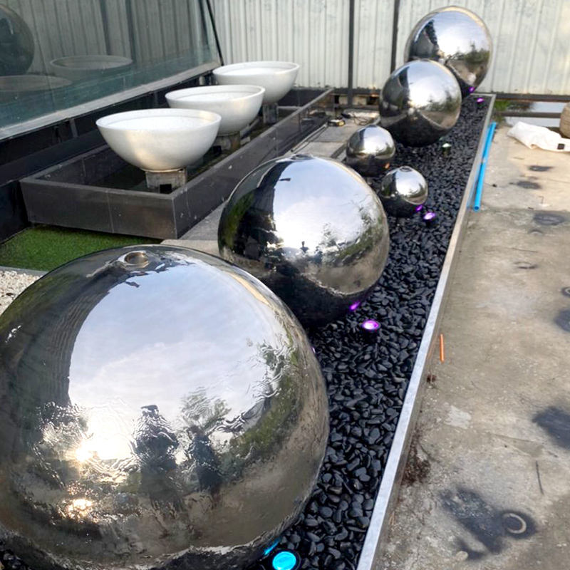 Fontana d'Acqua Sferica in Acciaio Inox per Esterni, Grande Statua Artistica in Metallo, Fontana d'Acqua in Acciaio Inossidabile