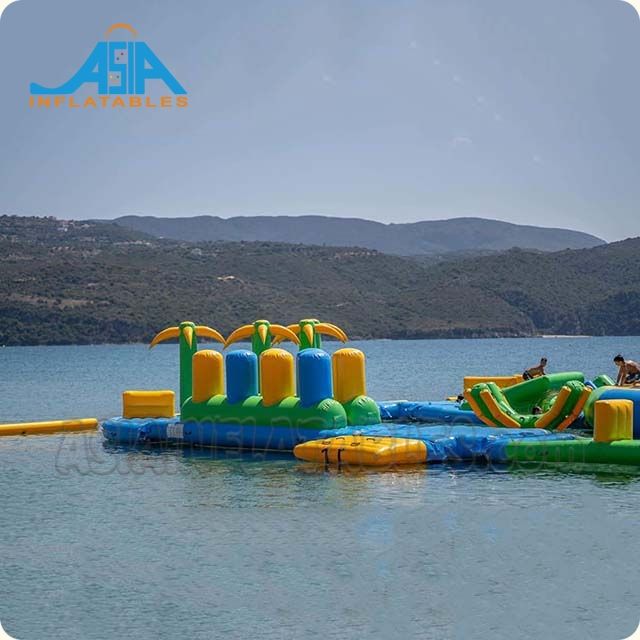 Parco Acquatico Gonfiabile Galleggiante per Esterni, Isola Gonfiabile per Giochi d'Acqua, Parco Acquatico Gonfiabile per Avventure in Mare
