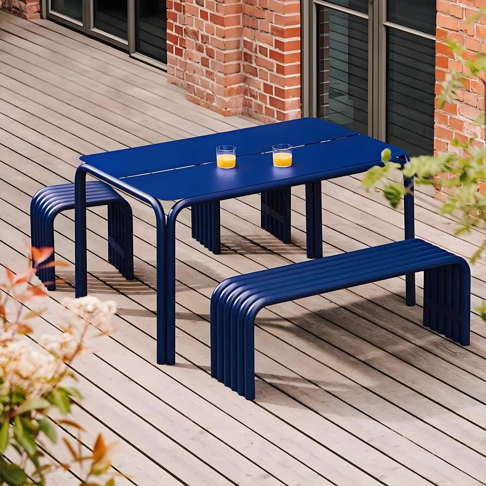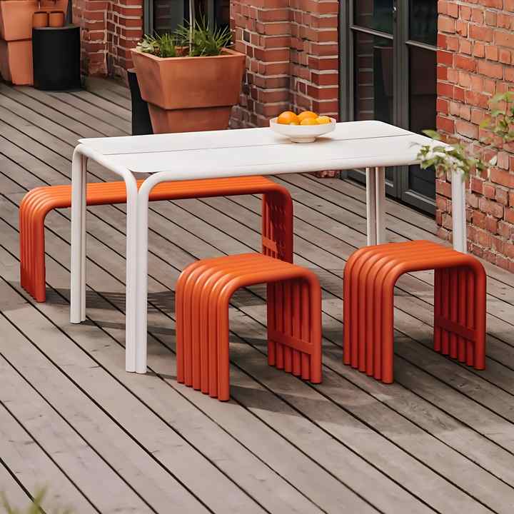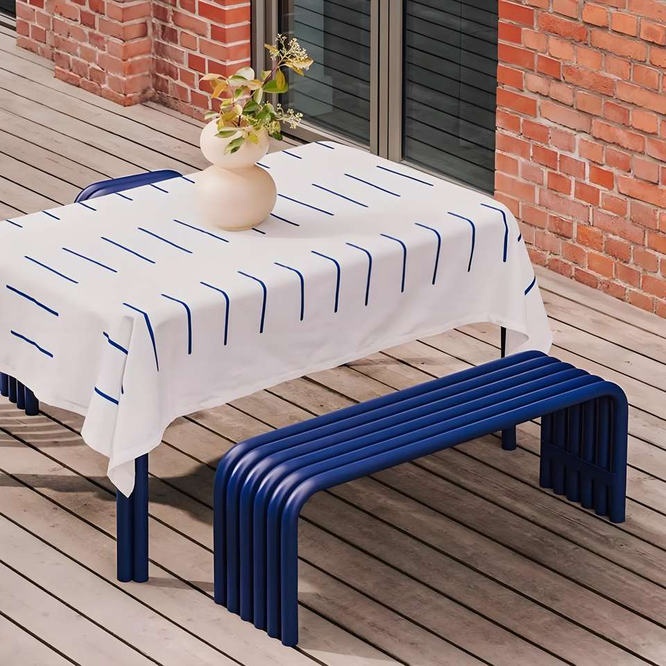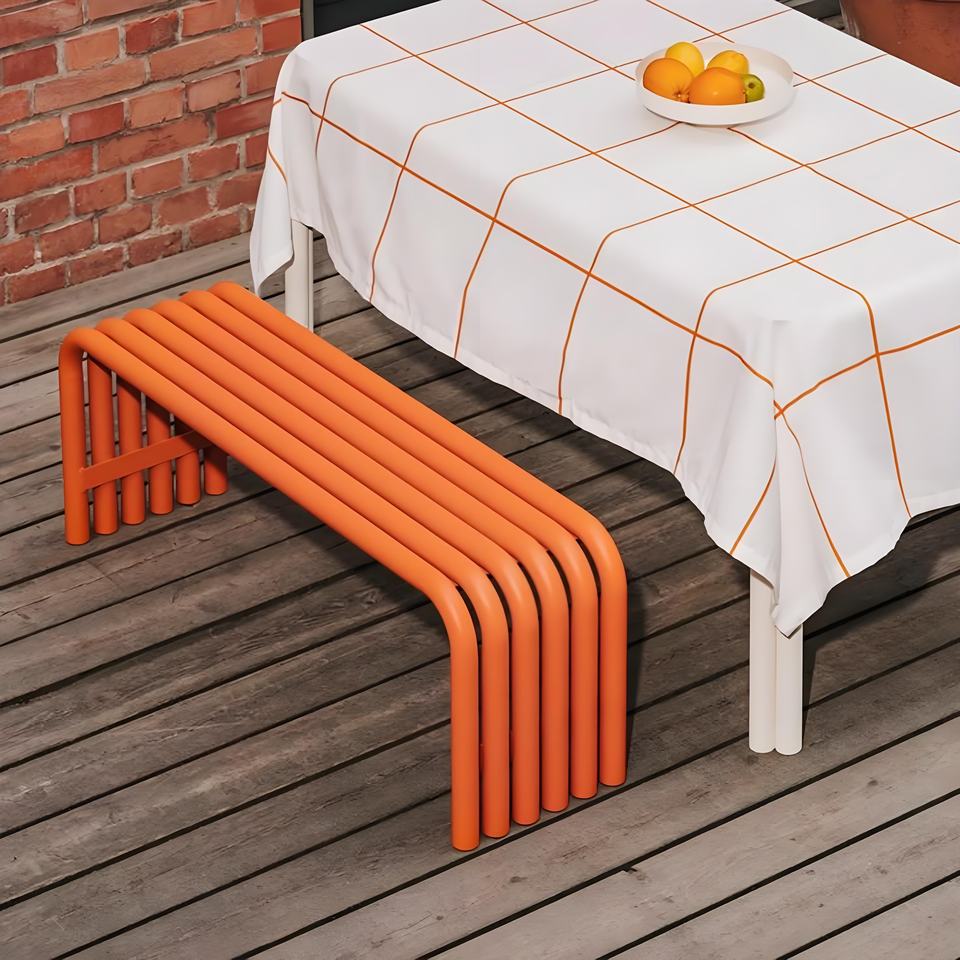 Tavoli e Panche in Ferro Curvato Stile Nordico Minimalista per Esterni, Terrazze, Sale da Pranzo e Aree Pubbliche