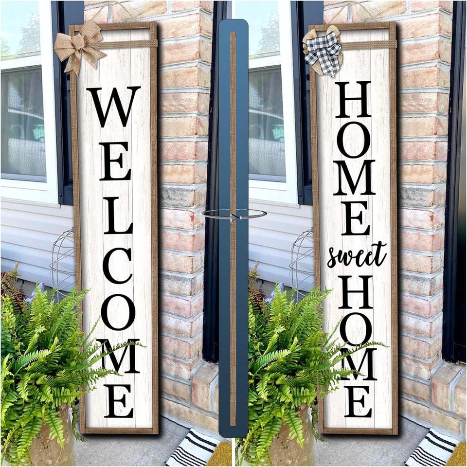 Insegna di benvenuto da esterno in stile rustico, dipinta, grande, bifacciale, in legno, verticale, da appoggiare, per portico, decorazione