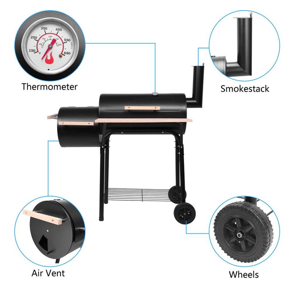Griglia a Carbone Mobile in Fusto d'Olio per Cene all'Aperto, Elegante Barbecue per Intrattenimento all'Aperto