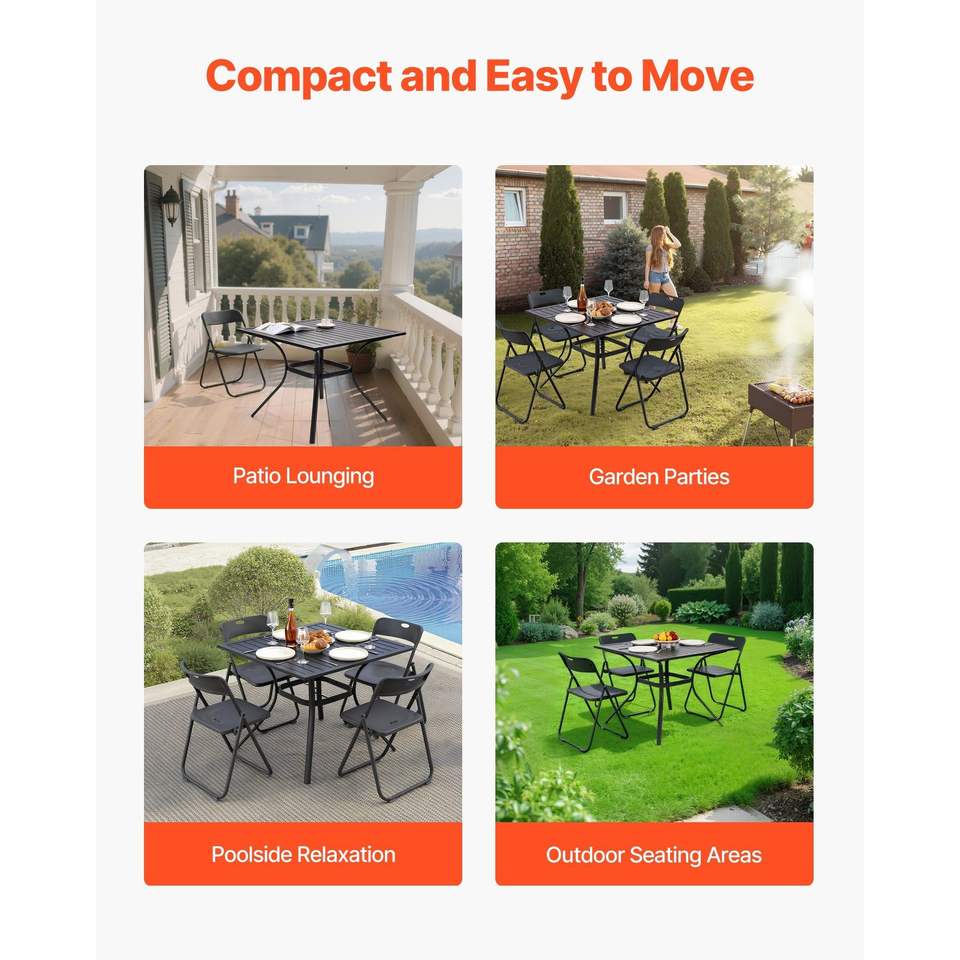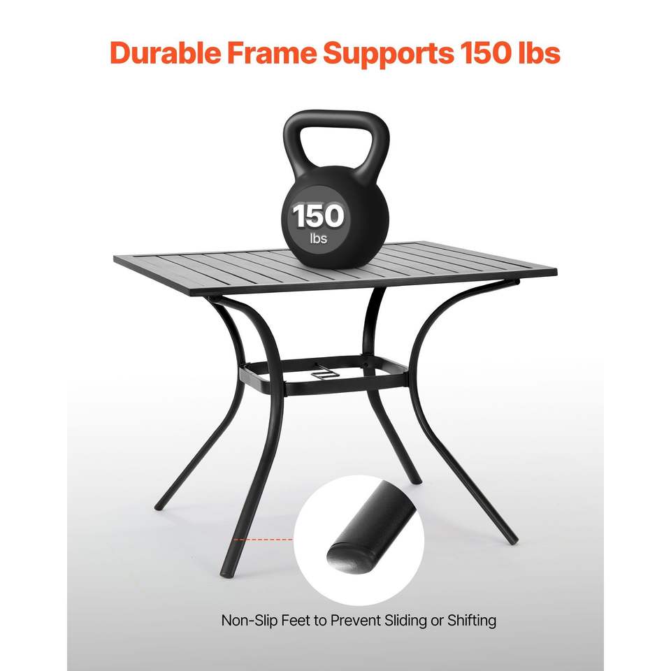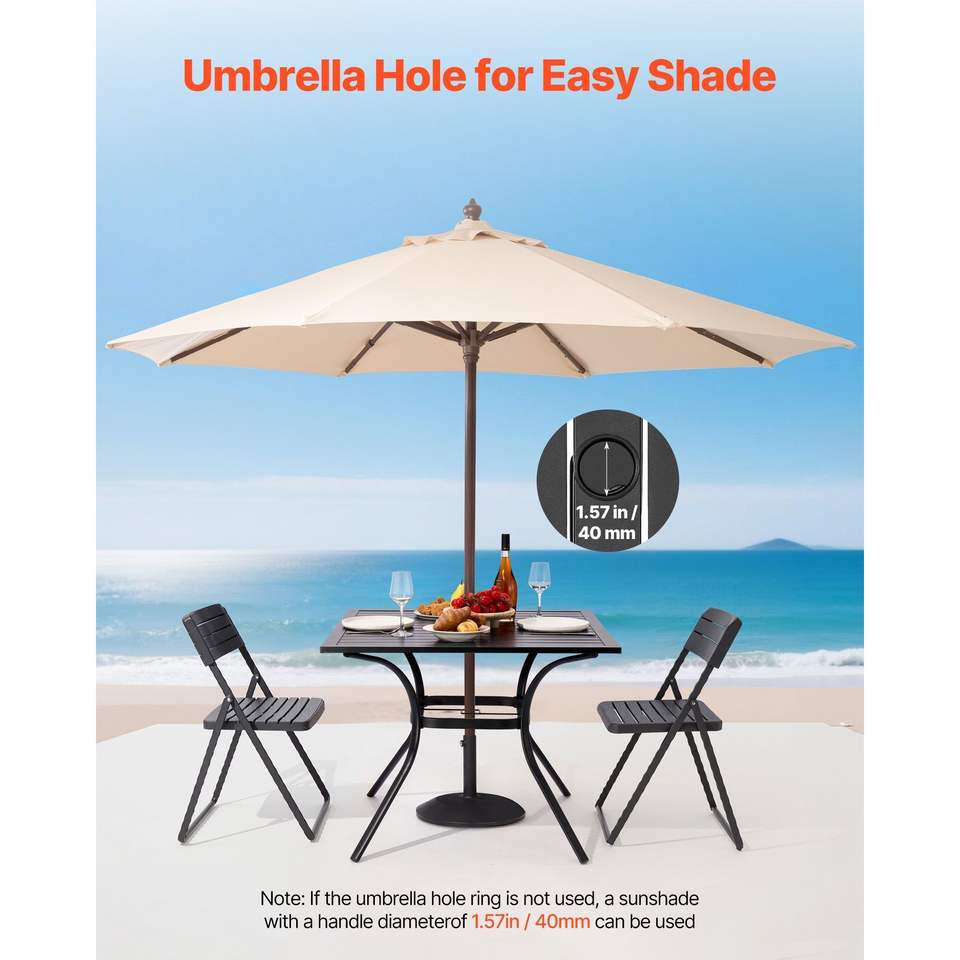 Tavolo da Pranzo da Esterno Quadrato in Metallo da 37 Pollici con Doghe in Acciaio, Resistente alle Intemperie, con Foro per Ombrellone da 1,5 Pollici