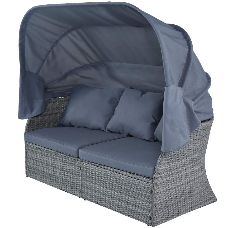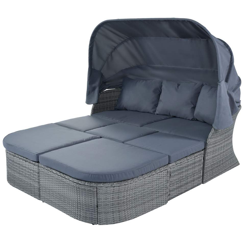Set di Mobili da Esterno in Vimini con Divano Letto e Baldacchino Retrattile per Conversazione e Relax