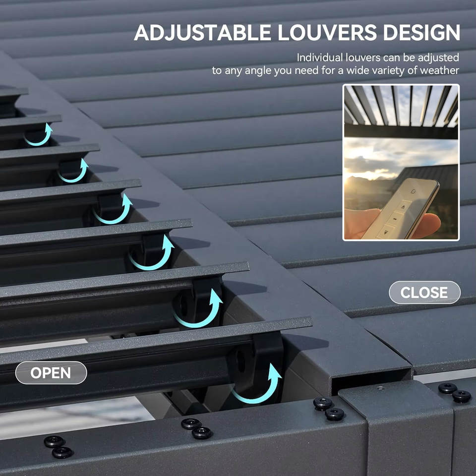 Outdoor Patio Roofing Aluminum Motorized Louvered Gazebo Pergola System for Garden with LED Light