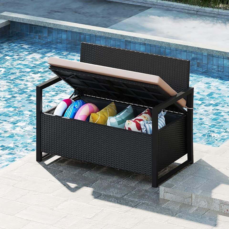 Panca da Esterno con Contenitore Integrato in Vimini, Divanetto per Patio