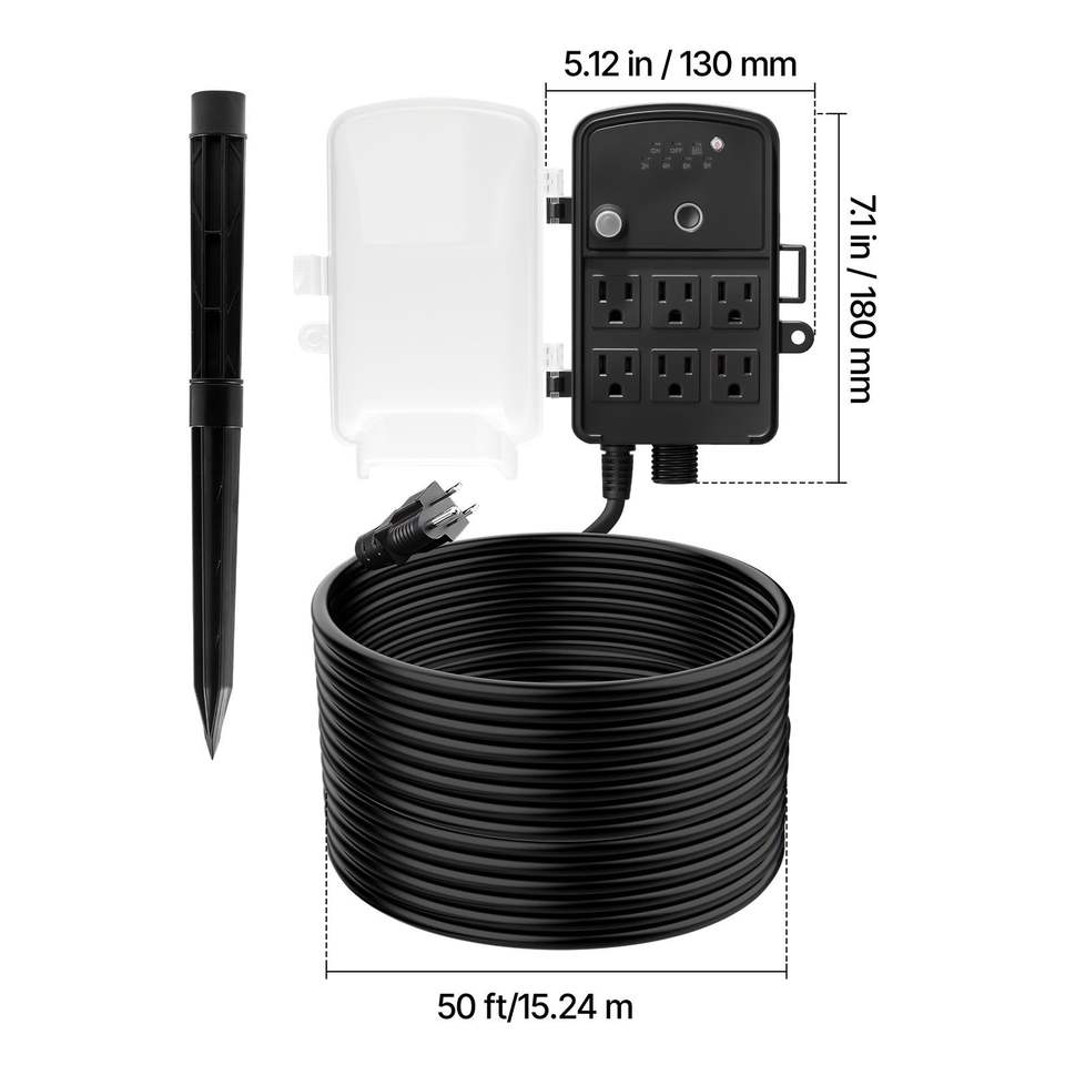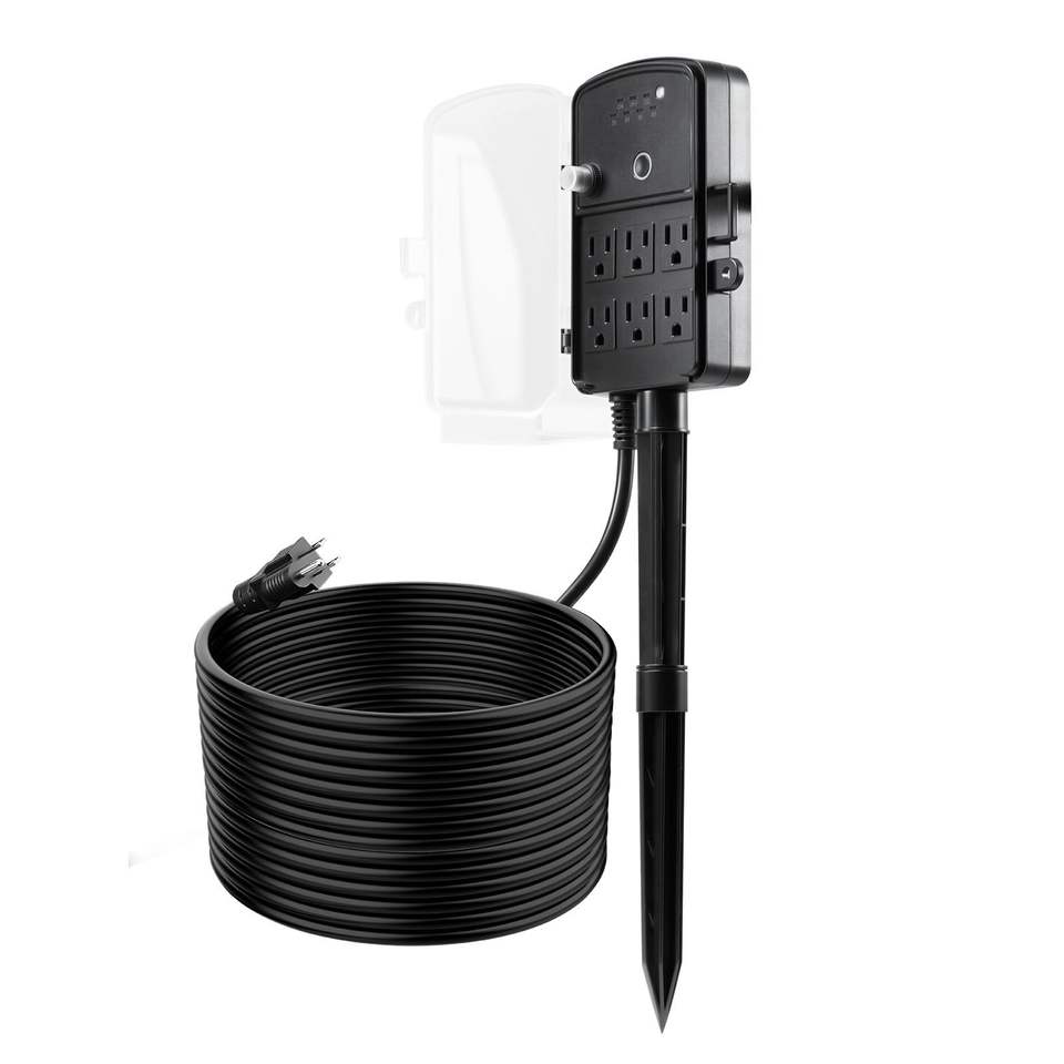 Multipresa da Esterno con Cavo di Prolunga da 15 Metri e Telecomando, Timer Crepuscolare, Palo Impermeabile e Coprimultipresa