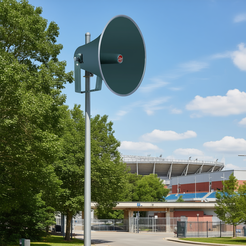 Altoparlante a tromba professionale da esterno in alluminio da 16 pollici, resistente alle intemperie, con staffa di montaggio per uso esterno