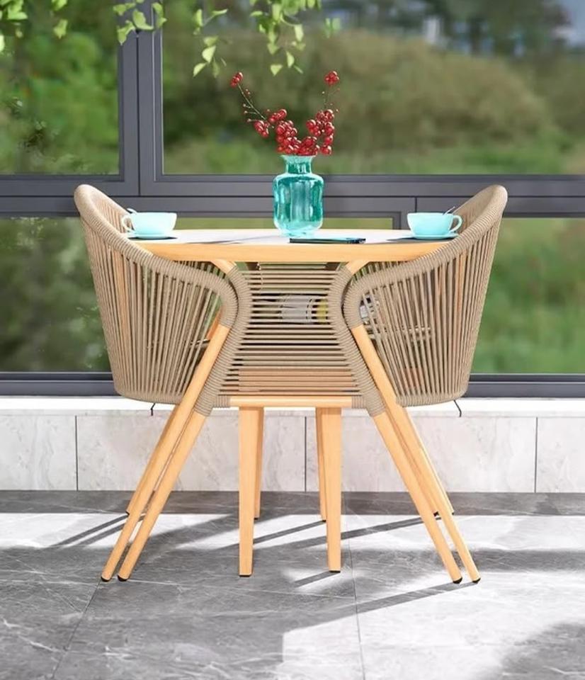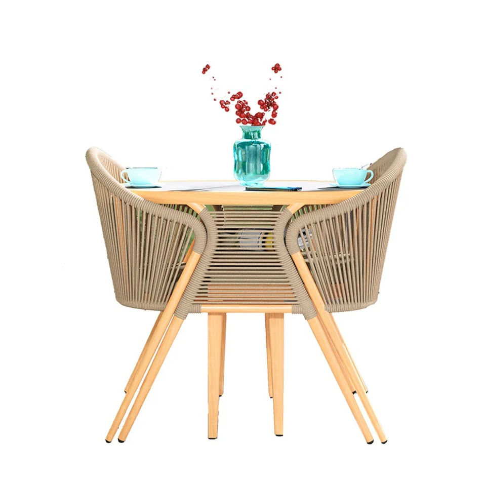 Set Tavolino e Sedie in Rattan da Esterno Materiale Resistente in Corda e Alluminio per Balcone Soggiorno Giardino Caffè e Tè