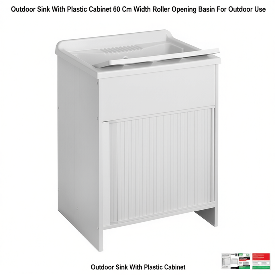 Lavello da Esterno con Mobile in Plastica, Larghezza 60 cm, Lavabo con Apertura a Rullo per Uso Esterno