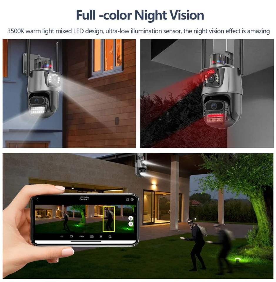 Sirena da Esterno con Allarme Sonoro Telecamera Domestica Icsee 6MP a Doppia Lente Visione Notturna Rilevamento del Movimento Telecamera di Sicurezza IP CCTV WIFI PTZ