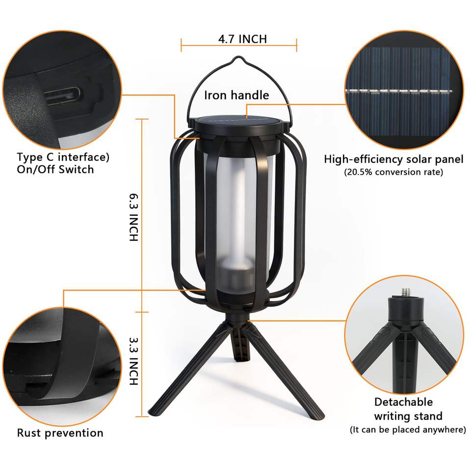 Lampada Solare LED da Esterno Impermeabile per Giardino, Campeggio, Atmosfera, Lanterna per Patio, Portico, Vialetto
