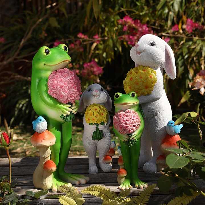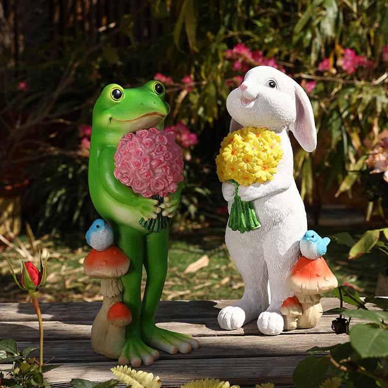 Illuminazione Solare da Esterno, Statue in Resina di Rana e Coniglio, Piccole Decorazioni per Zoo e Giardino, Decorazioni Luminose per Matrimoni