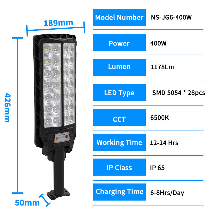 Lampione Solare da Esterno Impermeabile 400W, Lampada a Palo IP65 Impermeabile, Illuminazione LED per Giardino e Strada