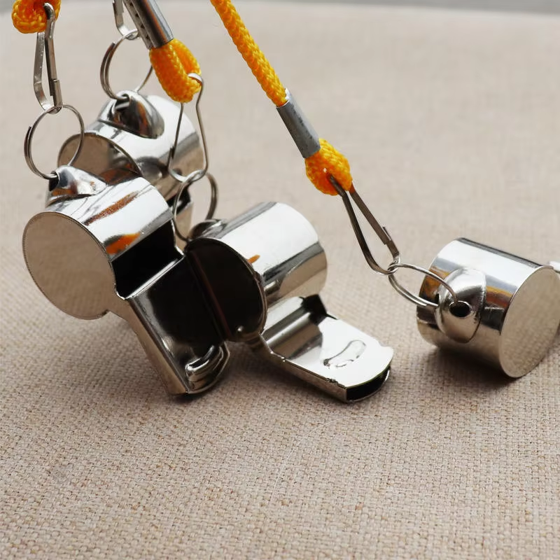 Outdoor Sports Silver Stainless Steel Whistle with Lanyard for Soccer Football Basketball Refereeing and Survival