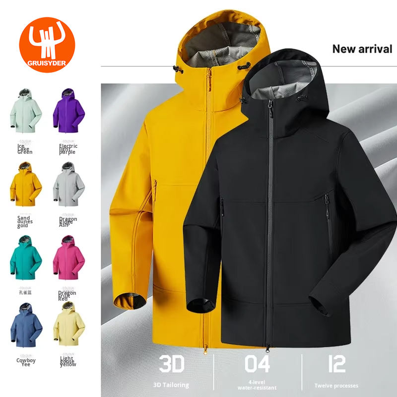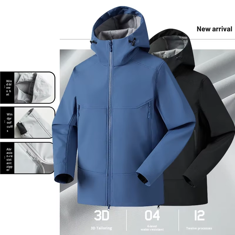 Giacca Softshell con Cappuccio per Sport all'Aperto con Cerniera Traspirante Tre-Prove Nuova Casual Antivento Impermeabile per Uomo e Donna