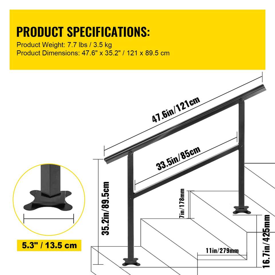 Corrimano per Scale Esterne Regolabile 0-30 Gradi, 47.6 X 35.2 Pollici, Ringhiera per Scale da Esterno, Balaustra, Corrimano