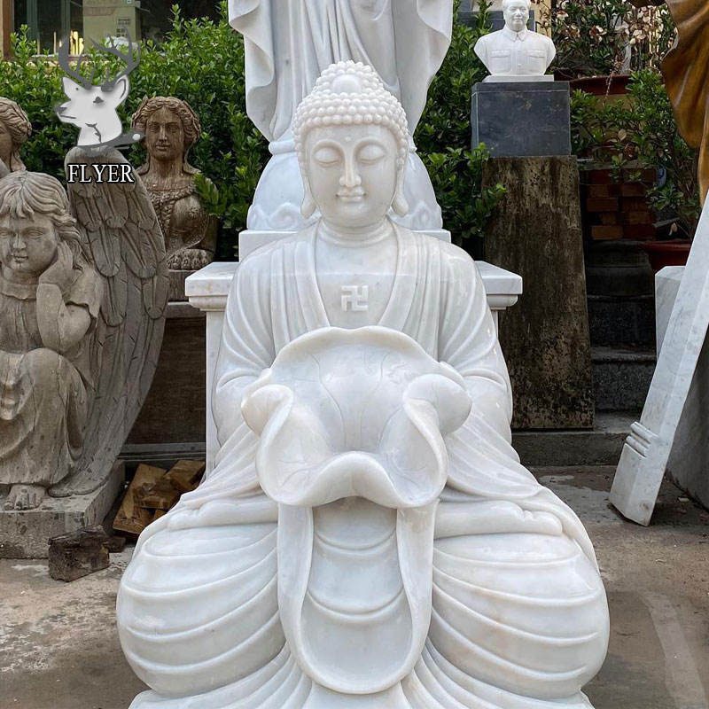 Seated Natural White Marble Buddha Statue