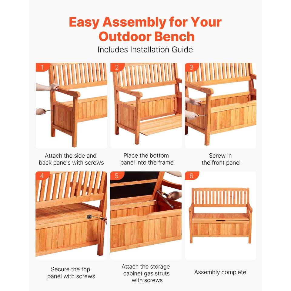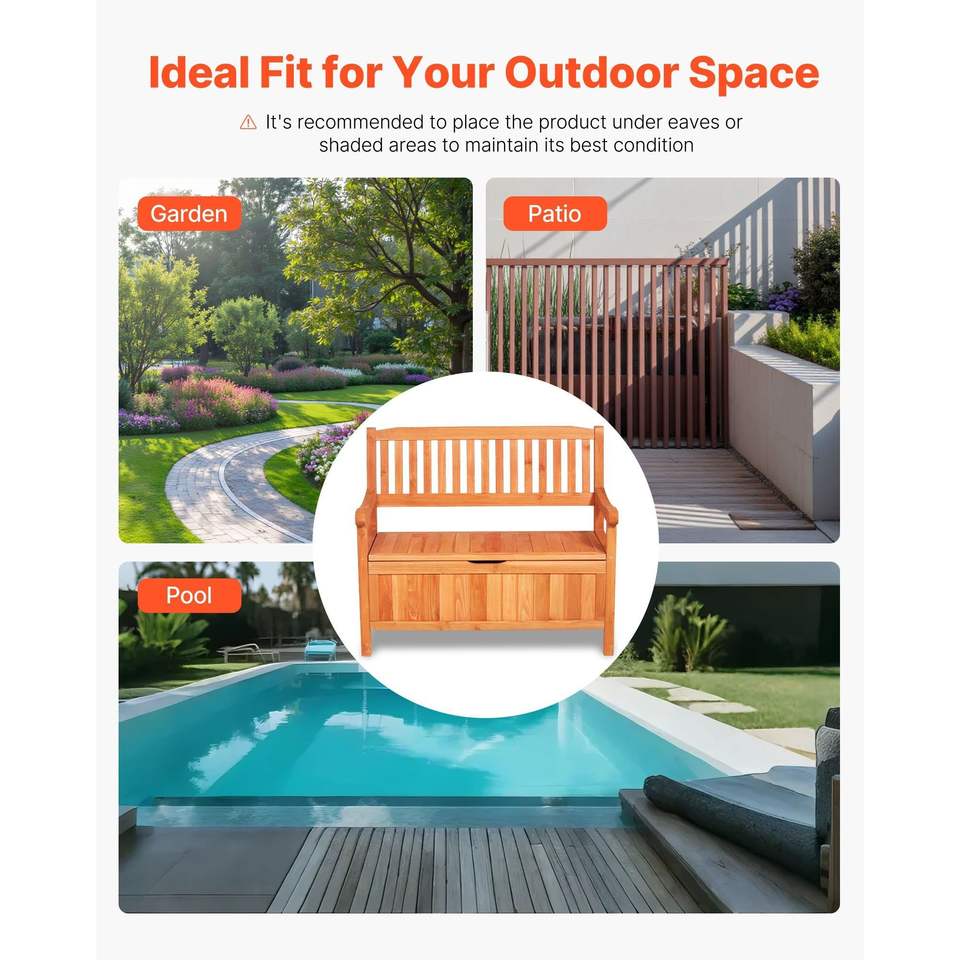 Panca Contenitore da Esterno per 2 Persone, in Legno, con Capacità di 125 Litri, Resistente alle Intemperie e Capacità di Carico di 320 Kg, per Patio