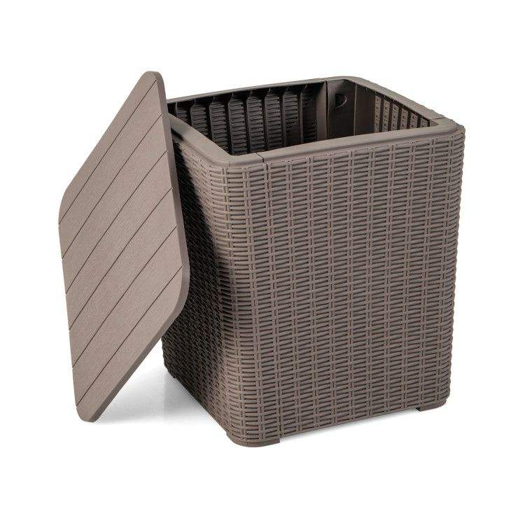 Tavolino da Esterno con Coperchio Rimovibile in Resina Intrecciata