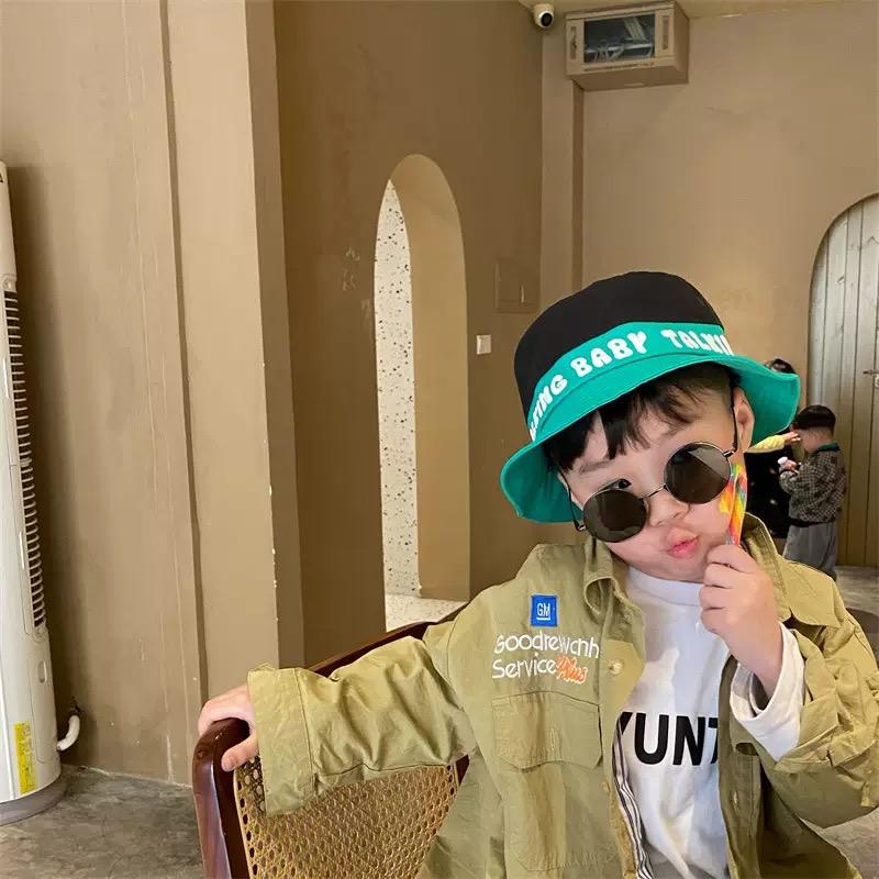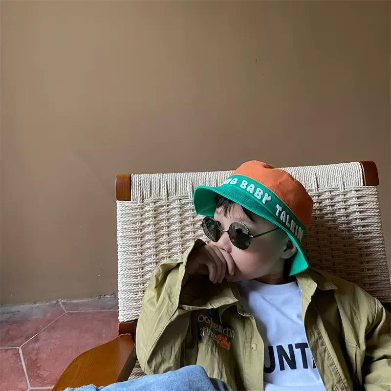 Outdoor Summer Unisex 2-8 Years Old Children Contrast Color Splicing 100% Cotton Bucket Hat With Custom Puff Printing logo
