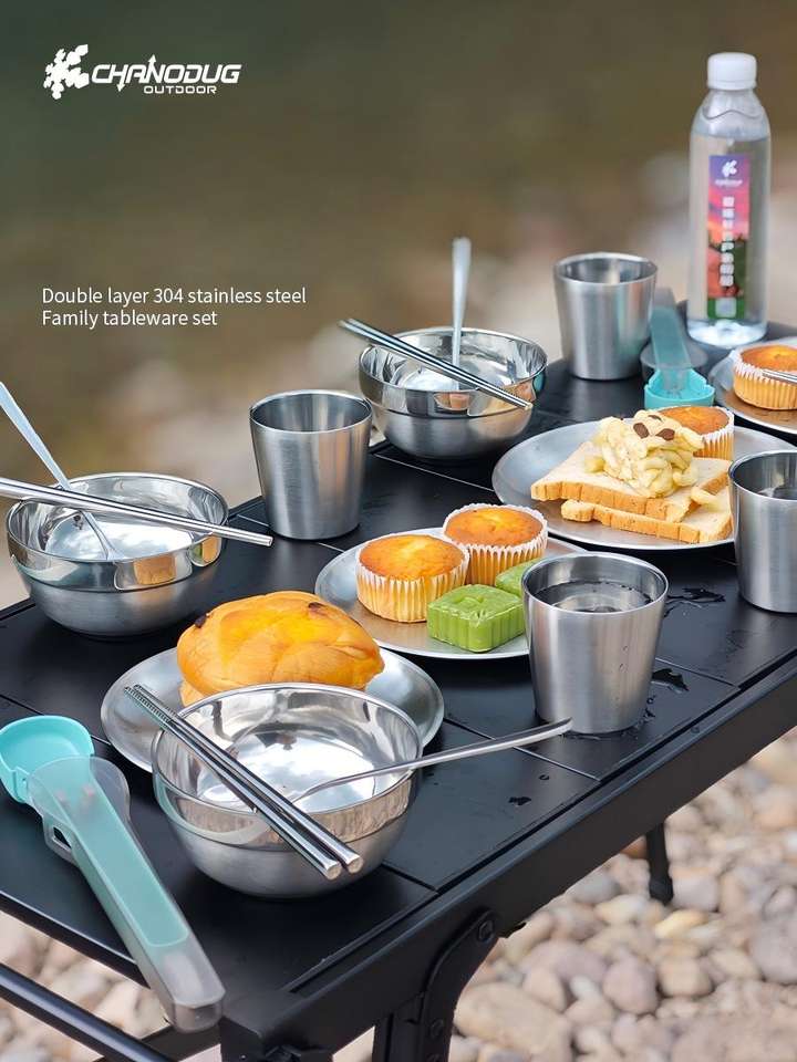 Set di Stoviglie da Esterno in Acciaio Inox 304 per Alimenti, Set Porta Pranzo in Acciaio Inox, Contenitore Ermetico per Alimenti da Viaggio 'Z'.