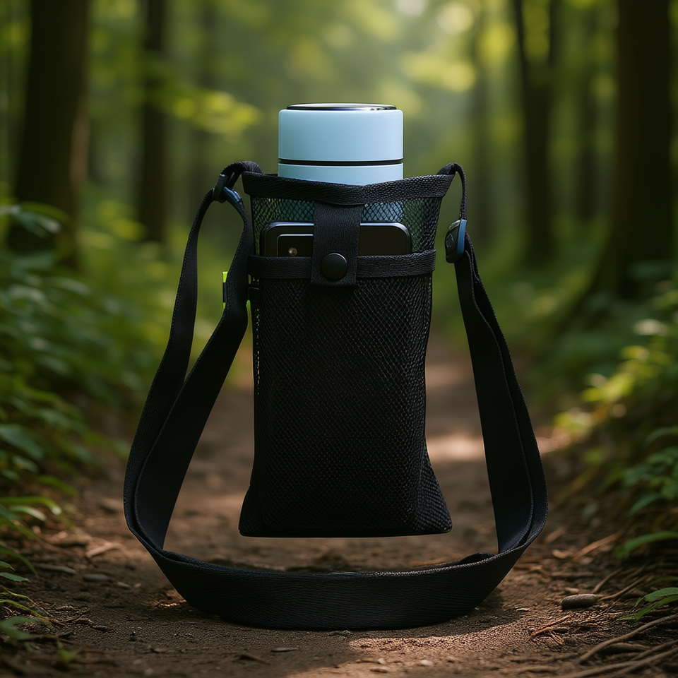 Bottiglia per la purificazione dell'acqua da esterno con borsa per telefono per un utilizzo attivo, colore nero