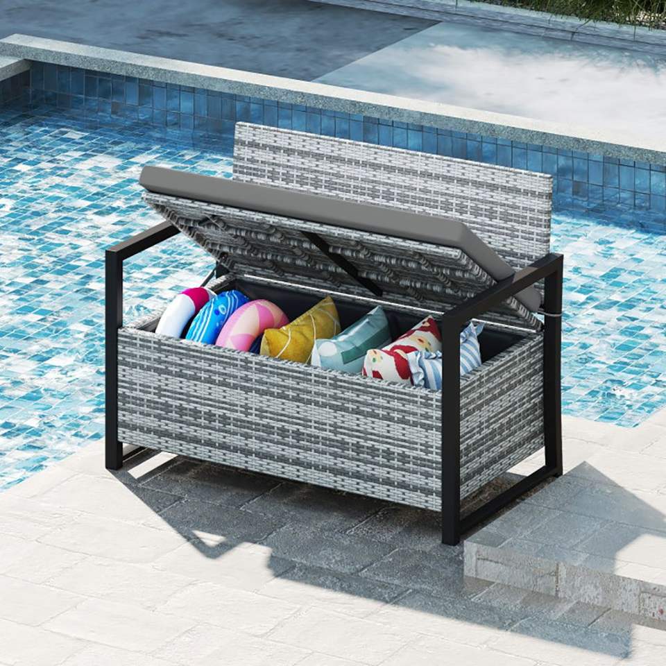 Panca da Esterno in Vimini con Vano Contenitore Integrato per Patio