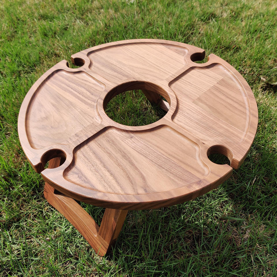 Outdoor Wine Picnic Wooden Table Folding Portable Bamboo Wine Glasses Snack and Cheese Holder Tray for Concerts at Park Beach