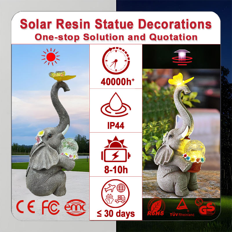 Cortile esterno Patio percorso decorazione LED resina elefante farfalla palla di vetro solare giardino statua