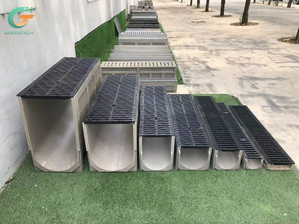 Esterno a forma di U trincea di scarico canale dell'acqua in calcestruzzo polimerico canale di drenaggio per esterni in polimero calcestruzzo grondaia