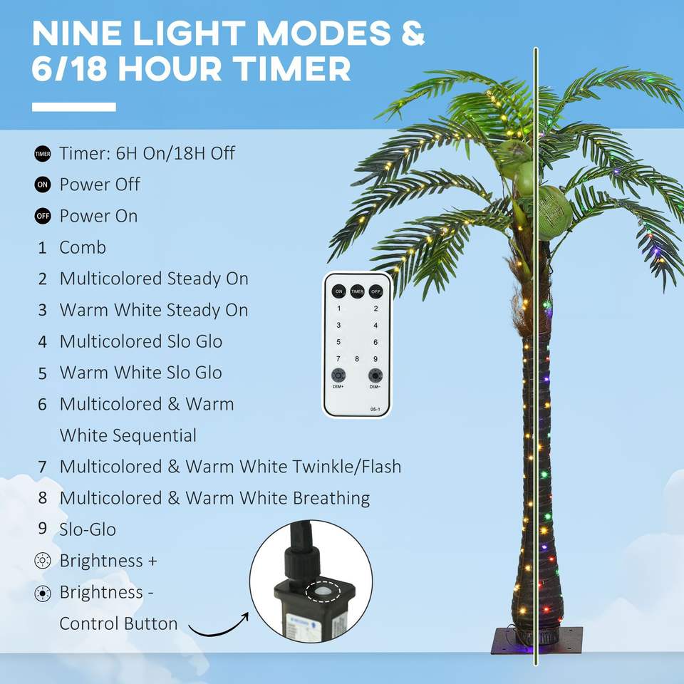 Outsunny 5' Lighted Tropical Palm Tree 3 Coconuts with 200 LED Color-Changing Remote Indoor/Outdoor Pool Party Decor