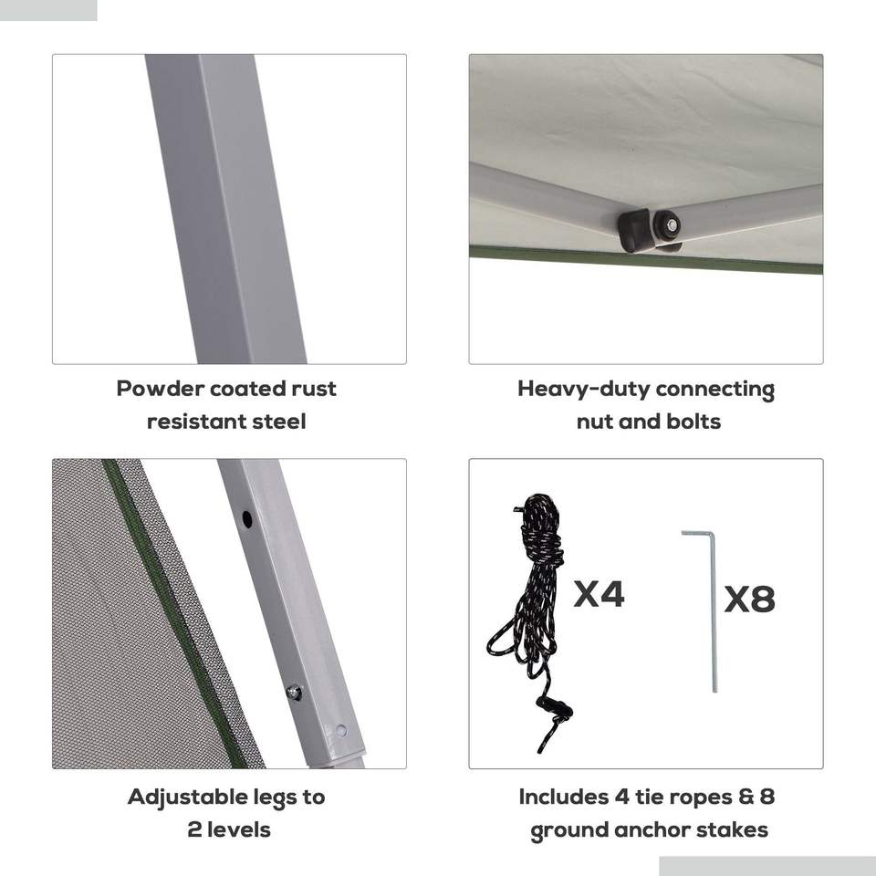 Green Pop-Up Sun Shelter Tent Slant Leg Carry Bag Height Adjustable for Outdoor Garden Patio Parties 11.5'x11.5'
