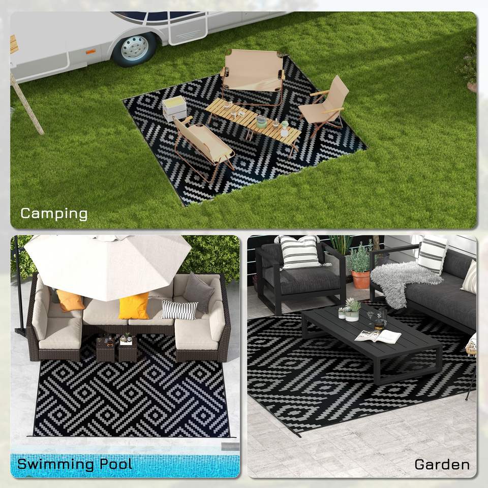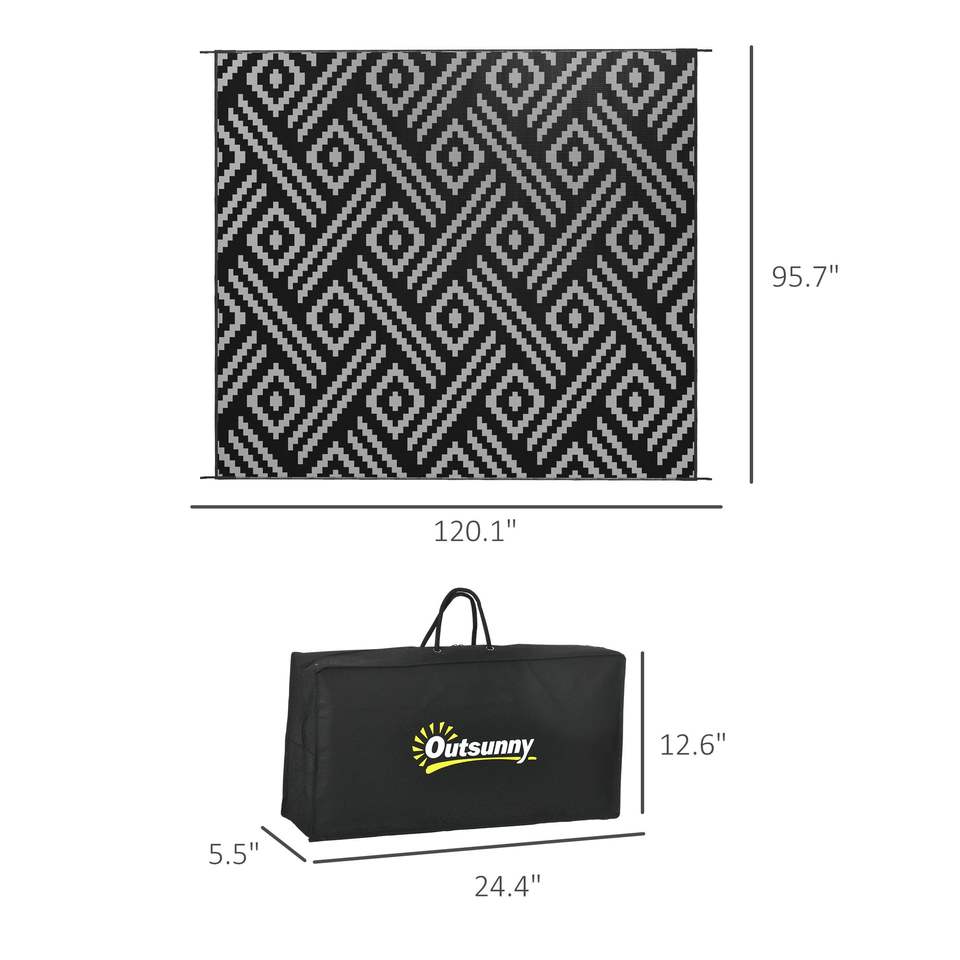 Tappeto Portatile per Camper e Campeggio 8' X 10' Reversibile Nero Grigio Geometrico Tappeto da Esterno Impermeabile in Plastica Effetto Paglia